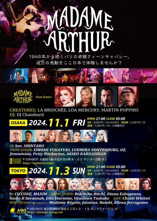 1946年から続くパリの “女装のクリーチャー” キャバレー『マダム・アルチュール』が待望の初来日公演決定!本場さながらの感動を、ここ日本で体感できる貴重な一夜!