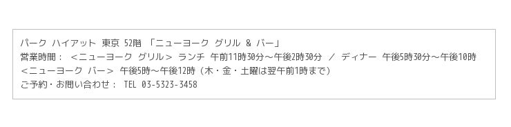 時 間: <ニューヨーク グリル> 午後5時30分~午後10時