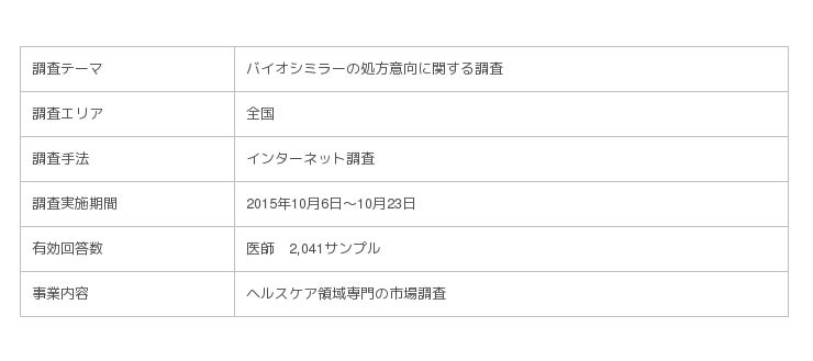 ・調査テーマ :バイオシミラーの処方意向に関する調査