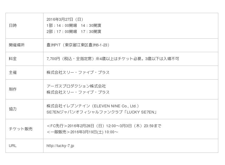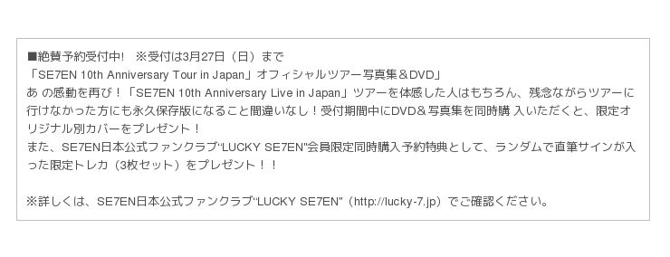 詳しくは、SE7EN日本公式ファンクラブ“LUCKY SE7EN”(http://lucky-7.jp)でご確認ください。