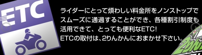 オートバイ用品専門店「2りんかん」を展開する株式会社ドライバースタンドでは、6月14日(水)から開始されるバイク用ETC車載器の助成キャンペーンの取扱、受付を開始します。