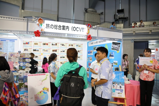8月に学卒プロジェクトがはじまってから約3ヶ月間、旅プランの企画に係る座学研修と各地域の現地視察を行ってきた学卒プロジェクト参加学生メンバーが、OCVBのブースで沖縄の魅力をPRしました。