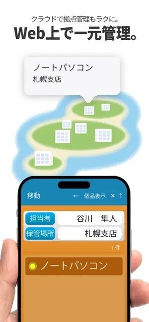 現場でリーダーから吸い上げられたデータはクラウド上で一元管理され、単一拠点内のトラッキングに加え、拠点間の移動登録にも対応。管理者は、複数拠点の在庫状況や移動履歴をリアルタイムで把握できます。