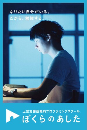 「ぼくらのあした」は、地方に在住の30歳未満の方を対象に、最短1ヶ月、最長でも2ヶ月でエンジニアになることができる職業訓練の場の提供や、東京での生活・就職までを無償で支援する若者支援事業であり、上京支援型プログラミングスクールの名称です。