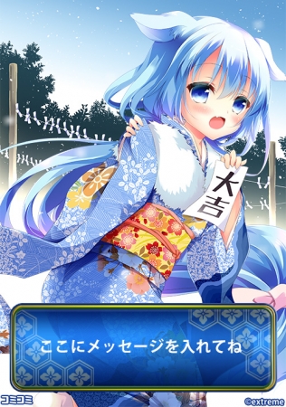 今回配信するのは、クリスマスとお正月をテーマにした美少女キャラクターのイラストで、萌えキャラ好きのファン必見のセットになっています。ゲームのワンシーンを切り取ったコマのフキダシに好きなメッセージを入れて、LINEやメールでの送信や、TwitterやInstagramへの投稿など、セリフを変えられる進化系スタンプとしてお楽しみいただけます。クリスマスやお正月などの、特別なシーズンのコミュニケーションを一層盛り上げてくれる、キュートなイラストセットです。