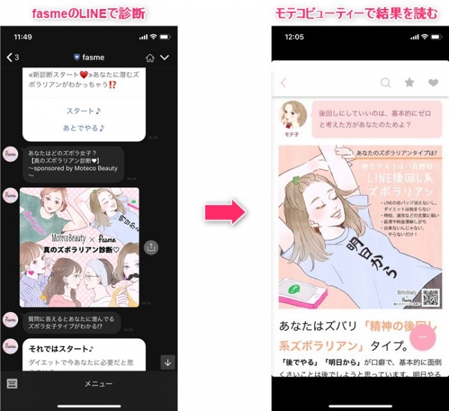 株式会社フトワク(本社:東京都目黒区、代表取締役:畔上剛)が運営する女性向け美容・ダイエットアプリ「MotecoBeauty(モテコビューティー)」は、女性向け動画メディア「fasme(ファスミ―)」とのコラボレーション企画「真のズボラリアン診断」を開始しました。