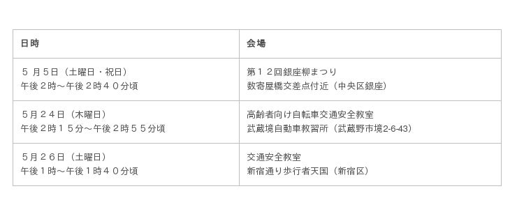 子供から高齢者まで、自転車のルールを楽しみながら、分かりやすく体験できる自転車シミュレータ交通安全教室を開催します。(期間中の主なものを掲載しております。)