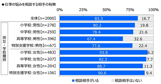 「仕事の悩みを相談する相手がいない」高等学校の男性教員では3人に1人