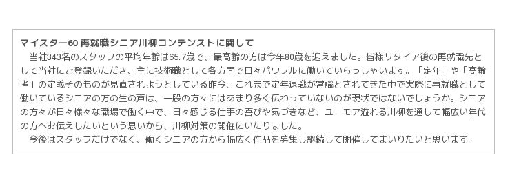 マイスター60 再就職シニア川柳コンテンスト