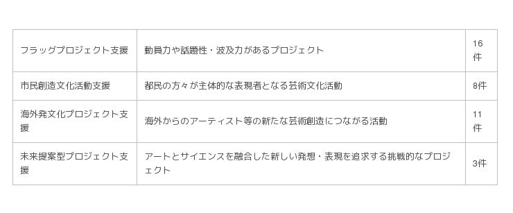 採択事業の詳細に関しては、 下記URLより「2019年度『Tokyo Tokyo FESTIVAL助成』第1期 採択事業一覧」をダウンロードの上、 ご参照下さい。