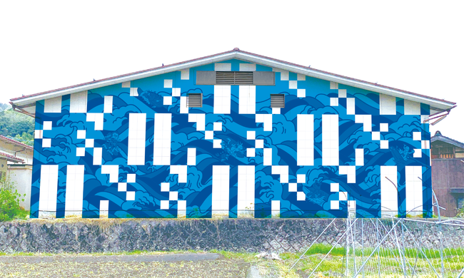 今回の壁画作品は「織物(伝統)」「丹後の海」「ブルー」をテーマに210独自の感性で描きます。