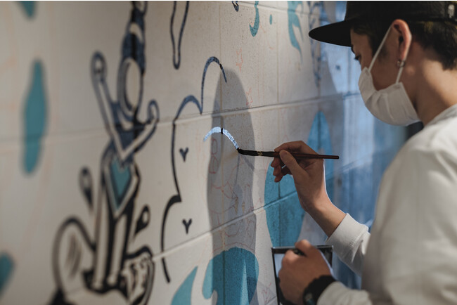 そしてまずは自社工房に地元アーティストを起用し、壁画を制作します。