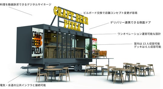 1. 独自設計のモバイルレストラン: 迅速な出店、コンセプト変更、短時間で移転・撤退ができるトレーラー型店舗