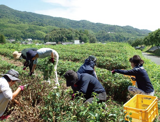 栄西茶畑でお茶摘み&お茶づくり体験茶畑を散策したあとは実際にお茶摘みとお茶づくりを体験します。摘み方がわからなくても大丈夫!