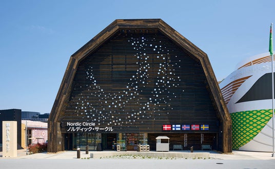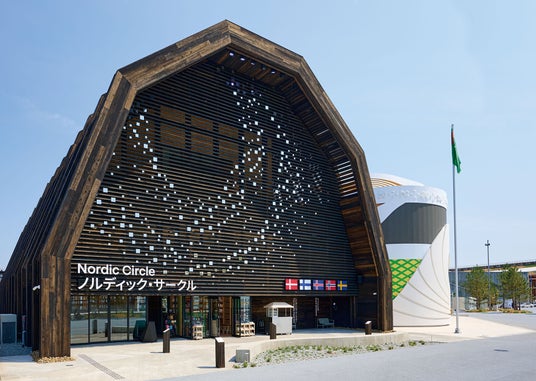北欧パビリオン「ノルディック・サークル」は、北欧の伝統的な納屋を思わせる木造建築。再利用可能な木材をふんだんに使い、持続可能な建築としても注目されています。