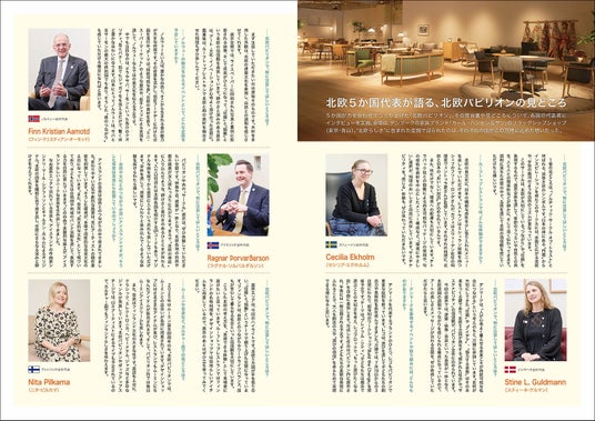 さらに本誌では、フィンランド、スウェーデン、デンマーク、ノルウェー、アイスランドの各国代表にもインタビューを実施。北欧パビリオンの見どころや、国ごとのテーマに込めた想いなど、それぞれの視点から語られる言葉には、訪れる前に知っておきたいヒントが詰まっています。