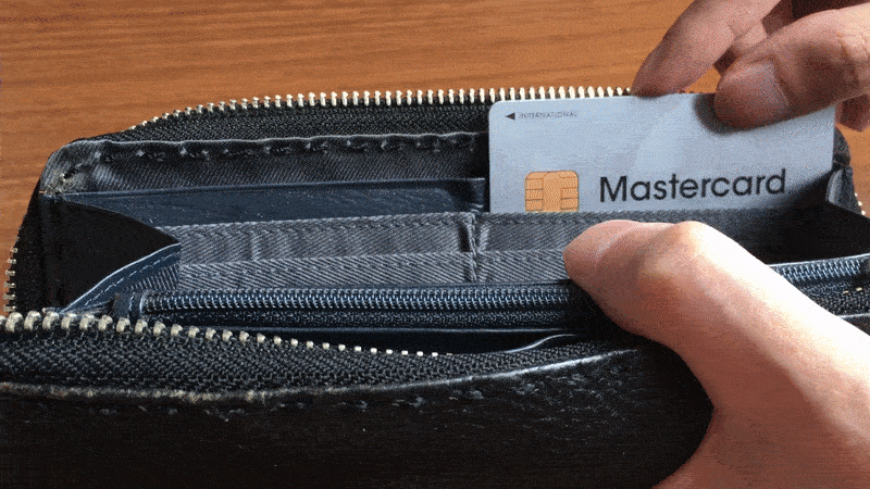 「Standeazy」ならクレジットカードと同じように、財布に入れておくだけ!