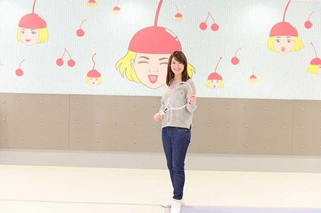 フロアいっぱいに広がるポップなデザインは、人気イラストレータ―竹井千佳さんが手がけました。ホワイトを基調とした室内に設けられたミニテニスコートと、それを取り囲むかわいらしいたくさんのイラストは、フォトスポットとしても楽しめます。