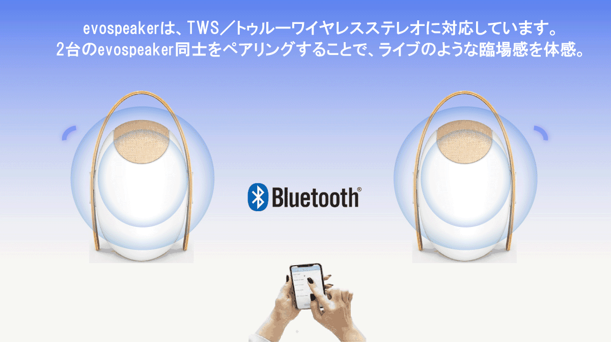 1台での使用でも空間全体に響き渡る本格的な音を奏でるが、2台をペアリングすることで、ライブ会場にいるかのような、更なる臨場感を楽しむこともできる。