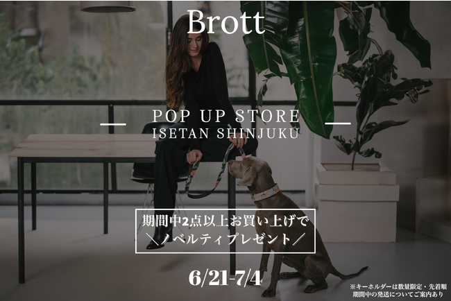 POP UP期間中に店頭にて、商品2点以上お買い上げのご購入者さまを対象にノベルティ”Brottオリジナルキーホルダー”のプレゼントをご用意しております。伊勢丹新宿店でのPOP-UP STOREにてぜひご確認ください。