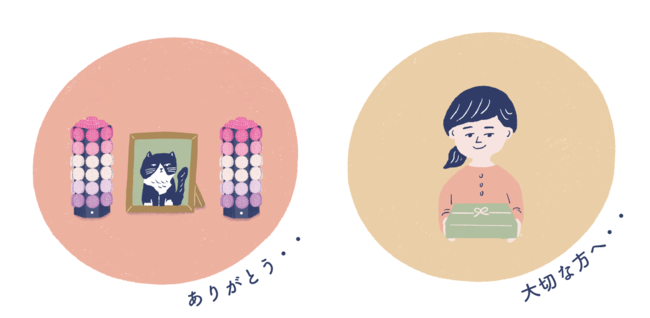 ご自宅にお仏壇がなくても大丈夫です。お写真のそばに添えるだけでも、その空間がより一層あたたかい空間となります。また、お盆や法事などにあわせて、ご実家やご親戚に贈って差し上げるのも、素敵な心遣いになると思います。