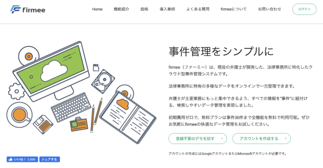 事業内容: 弁護士事件サービスfirmeeの開発・運営等