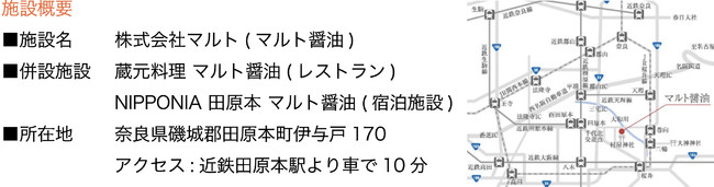 当施設は、醤油蔵元としての役割のみならず、お醤油とお客様との新たな接点として、“泊まれる醤油蔵”である「NIPPONIA 田原本 マルト醤油」及び「蔵元料理 マルト醤油」を展開しております。