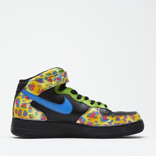 今回発売された「GOLDEN CATS」は、マルチカラーのレオパード柄をベースにペイントを施したモデル。スウォッシュには鮮やかなブルーのレザーを合わせました。ベースとなったAF1 MIDの特徴でもある、足首部分のストラップも丁寧にペイントを施し、細部まで世界観を表現した作品に仕上がっています。