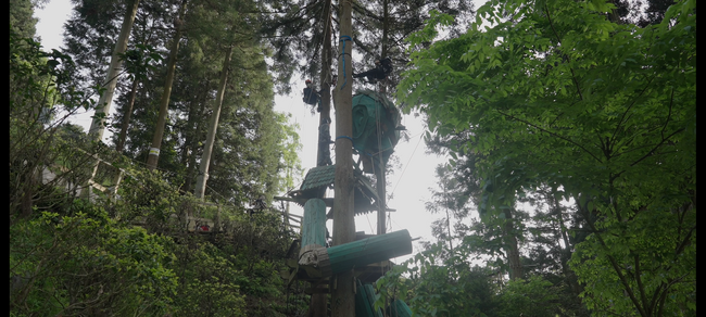 プロジェクト第二弾の舞台は愛媛県西条市にあるフォレストアドベンチャー・西条。森の中に全長約10mの巨人型モニュメントの建造をしました。