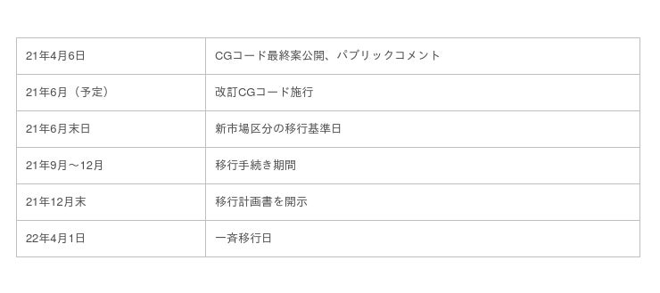表:改訂CGコードの移行スケジュール
