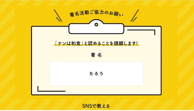 この活動では、日本で独自の進化を遂げたナンはもはや”和食”であることを訴求していくと同時に、公式サイト内やSNS上で賛同者を募る署名活動を実施します。日本人にとってナンが身近な存在であることを発信し、より、食卓で楽しんでもらえるように、魅力の訴求を行なっていきます。