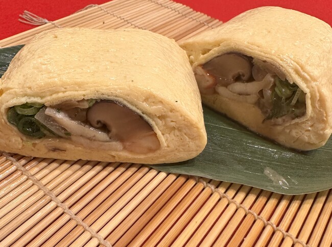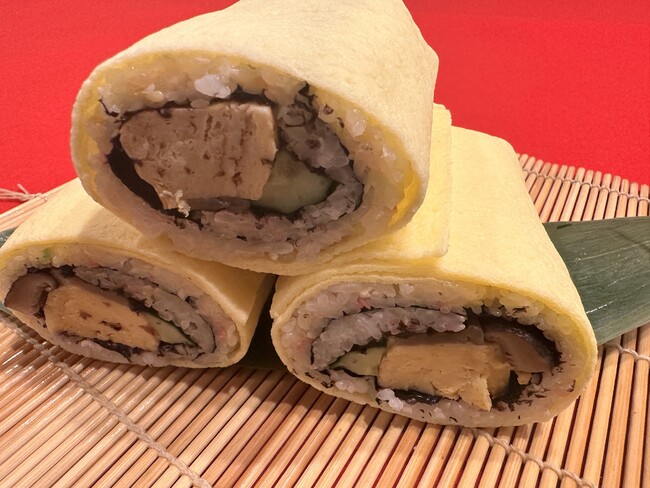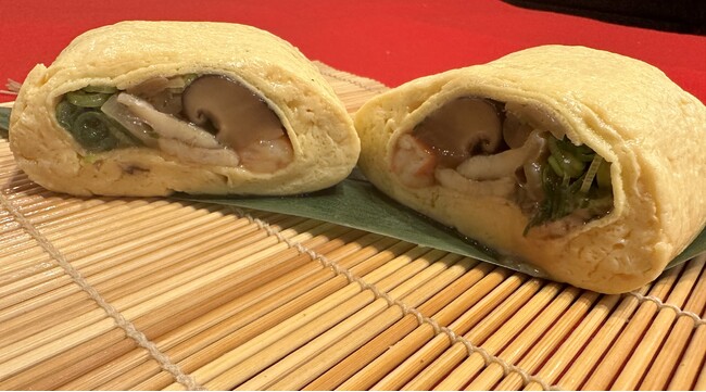 従来のすし飯を利用した巻き寿司スタイルとは全く違う、だしまきの中に具が入っている