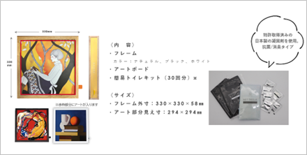 ●フレーム ●アートボード ●簡易トイレキット(凝固剤、畜便袋、ウェットティッシュ)※30回分