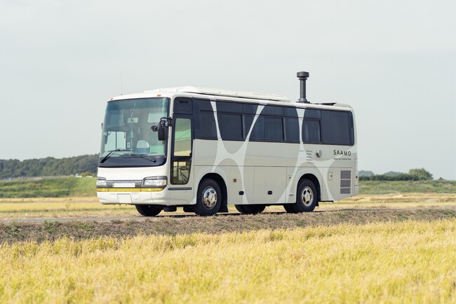 2023年11月21日(火)、株式会社SUNDAY FUNDAY・アドレスホッパー株式会社・株式会社フェリックス・株式会社NODの四社からなるSAAMOプロジェクトチームは、本格的な薪サウナと温冷水シャワー、電源を備えた、オフグリッド移動空間「SAAMO」をローンチ致しました(呼称:サーモ)。SAAMOは、”Sauna as a movable oasis”の略称で、今後来るべきモビリティの未来に先駆けて、移動空間内での体験を構想し、社会実装するためのプロダクトです。中古の大型観光バス(日野セレガ)をリノベーションし、下部トランクには給排水タンクや給湯設備、ポータブル電源を搭載、さらに乗車部奥にはフィンランドNARVI社製の薪ストーブを備えた5名収容のサウナ室、乗車部手前には約四畳半の畳の和室空間を備えています。
