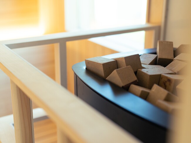 その取り組みの一環として、初期段階より島根県大田市温泉津町の「石州瓦」の技術を活かしたサウナストーンを搭載しております。来待石だけの釉薬と焼成温度1350度で、職人の手によって丁寧に焼き上げられた石州瓦は、耐火・耐水・耐久性に優れた世界一丈夫とも言われる陶器瓦です。