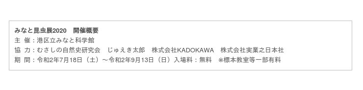 港区立みなと科学館(所在地:港区虎ノ門 館長:布施直人)では、7月18日(土)より、夏の企画展として「みなと昆虫展2020」を開催いたします。