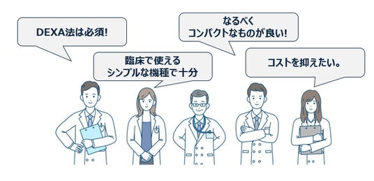 「DEXA法は必須」「機能はシンプル」「コンパクト」「コストを抑えたい」