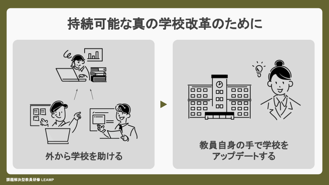 その課題を解決に導くべく、課題解決型教員研修「LEAMP」が生み出されました。