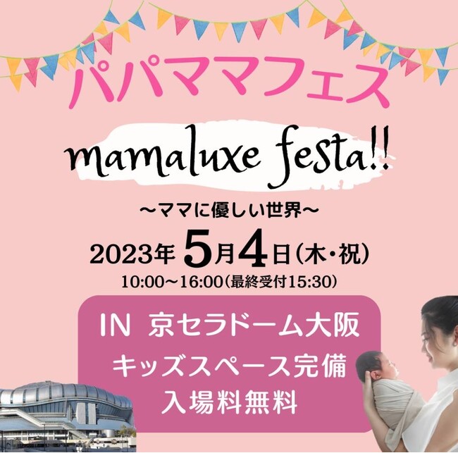 産前産後ケアのコミュニティを運営する一般社団法人ママリュクス(代表理事 宮田雄平)は、5月4日(木・祝)に京セラドーム大阪スカイホールにてママとパパを支援するフェスタを京セラドーム大阪で開催致します。(https://mamaluxe.jp/festa-osaka/)