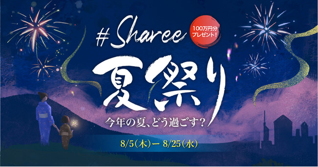 コミュニティプラットフォーム「Sharee(シェアリー)」は、2021年8月5日(木)~8月25日(水)まで、総額100万円分のプレゼントキャンペーン「#Sharee夏祭りキャンペーン」を開催します。