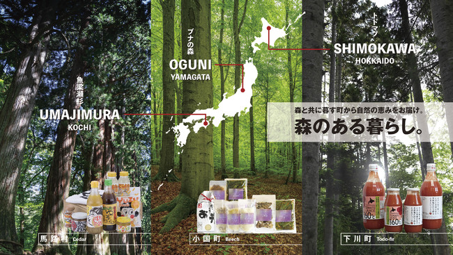 人口が減りゆく山村地域で広がる、多様で持続可能な取り組み。今回は、北海道下川町・山形県小国町・高知県馬路村にフォーカスします。森のゆたかな恵みとともに生きる方々の暮らしを感じていただきたいという想いから、各地域で生産~加工まで行っているこだわりの商品をご用意しました。