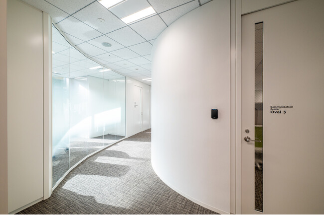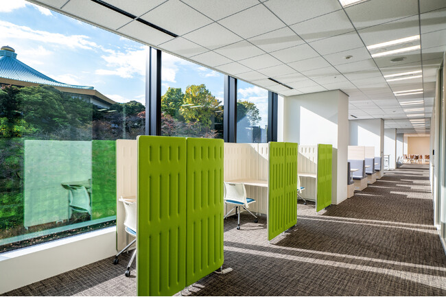 新しいオフィスは、大きな窓から常に優しい光が差しこむ環境です。