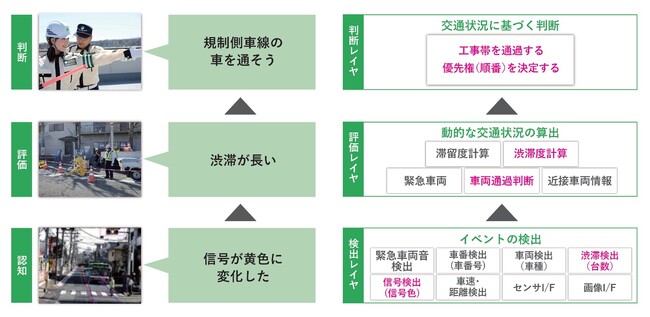 最新センサー技術と画像認識技術を用い、車両の片側交互通行の誘導を自動化。