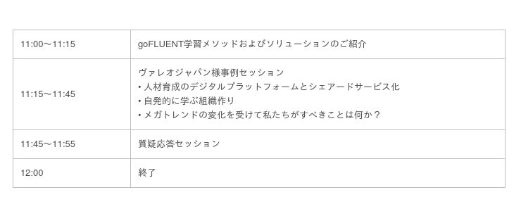 この度、法人向け英語研修プログラムを提供するgoFLUENT株式会社(本社:東京都中央区、日本責任者:大野 孝司 以下、goFLUENT:ゴーフルエント)は、多業界で30年の人事キャリアを持つ株式会社ヴァレオジャパン HR Directorの篠原稔様をお招きし、働き方が様変わりしたニューノーマル時代における人材育成のシェアードサービス化、自発的に学ぶ組織作り、これまでのご経験を通して感じていること等をお伝えいただくウェビナーを実施いたします。是非ご参加ください。ご登録はこちら>>>https://bit.ly/2HbaJaq