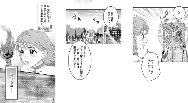 本キャンペーンは、2021年に好評を博した少女マンガ風コンテンツの続編として、異世界転送マンガ仕立ての「ストーリー型クイズ」形式でお届けします。物語の登場人物は、東京で暮らすとある2人の男女、須賀京子(すがきょうこ)と火野チカラ(ひのちから)。ひょんなことから異世界に転送されたキャラクターたちが、かけられた呪いを解くために奮闘する中で、使うべき魔法をクイズとして出題します。