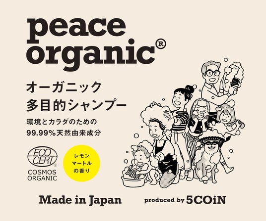 FiVE COiN株式会社(本社:東京都渋谷区、代表取締役:板倉 聡)が展開する、消費者のからだに優しく自然環境へ配慮した笑顔でつながる好循環を作り出すことを目指すブランド「peace organic」から、99.99%天然由来成分で作られた「オーガニック多目的シャンプー」を発売します。「オーガニック多目的シャンプー」(以下、本製品)は、フランス発のオーガニック・スーパーマーケット「ビオセボン」全店・オンラインストアで2025年4月16日より先行販売を開始します。
