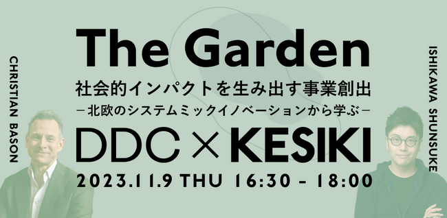 デンマークの国営デザインファーム デンマーク・デザイン・センター(DDC)と、日本のデザインコンサルティングファームKESIKIは、社会的インパクトを生み出す事業創出のためのインキュベーションプログラム「The Garden」を共同で設計・運営いたします。プログラムの詳細に関するリリースに先立ち、デンマーク・デザイン・センターCEO クリスチャン・ベイソンと KESIKI 代表取締役CDO 石川俊祐 による対談セッションを開催いたします。