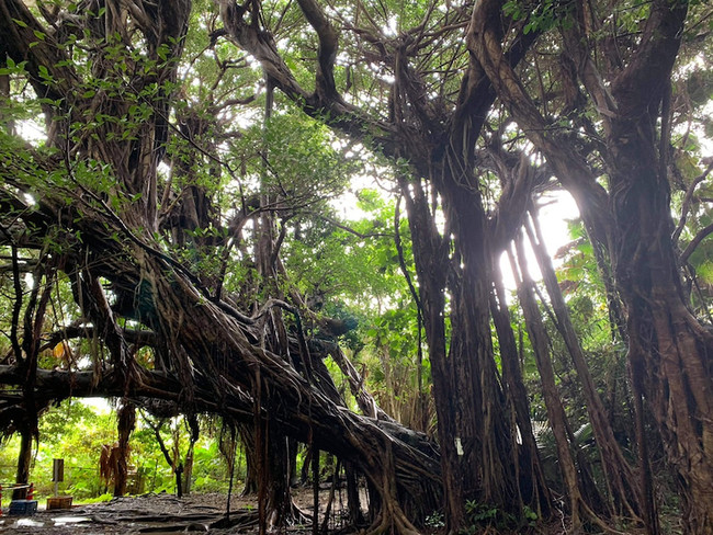和室では寝転んで本を読んだり、瞑想をしたり、お昼寝をしたり、天気のいい日は縁側でのんびりと過ごすことも。目の前には樹齢200年~300年ともいわれるフクギの御神木が拝めます。