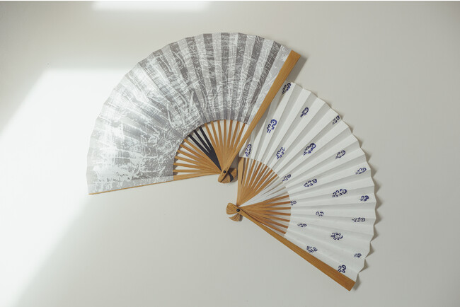 メインとなる扇子は、それぞれ異なる表情で和紙に刷られた作品を、職人が伝統の技法で一点ずつ手で組み上げたもの。