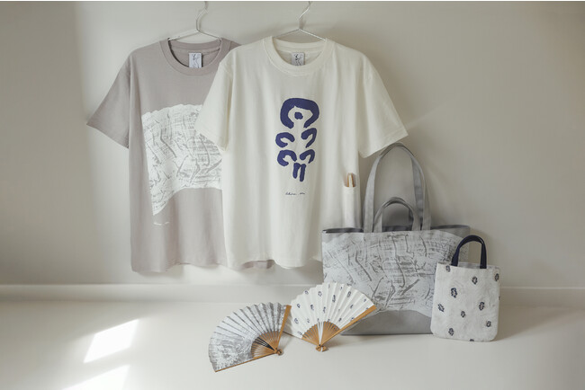 「朝霧 asa-giri」と「花霧 hana-kiri」 二つの作品を、扇子、Tシャツ、バッグに展開。